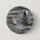 Este botón muestra una fotografía de un Coot y su chica nadando en un río de marea. La hembra es gris con un parche blanco en la cabeza y ojos rojos, mientras que la pequeña y esponjosa chica es gris pálido con un frente blanco.