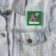 Este botón festivo presenta un hermoso árbol de Navidad en medio de un campo durante una nevada.