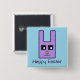 Un conejito de pascua lindo hecho de cuadrados y de líneas rectas con las esquinas redondeadas. El conejo es púrpura en un fondo del azul de cielo.