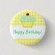Este botón de pastel de cumpleaños muestra mi quequito dibujado con el ratón con un fondo de verificación amarillo y blanco.