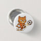 Botón redondo con un gato naranja pateando un balón de fútbol con una expresión intensa. Un divertido botón deportivo para mochilas, chaquetas o ropa casual.