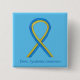 La toma de conciencia del síndrome de Down usa cintas azules y amarillas. El pasador de reconocimiento muestra la pintura de una cinta de reconocimiento azul y amarillo sobre un colgante de botón personalizado. Las cintas de reconocimiento amarillas y azules pueden ser personalizadas con mensajes personalizados para crear botones de causa para los pendantes de recaudación de fondos para cáncer u otras causas, regalos de pin de concienciación u otros eventos especiales de pendant o clavija de solapa de concientización para ocasiones de causa.