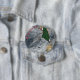 Un botón honrando a la fossilista Mary Anning de Lyme Regis, Dorset en la costa sur de Inglaterra. Mary hizo varios descubrimientos fósiles importantes a principios del siglo XIX. El ilustracion muestra a una joven María descubriendo un ictiosaurio (lagarto de pescado) en las rocas a lo largo del Black Ven al este de Lyme Regis.