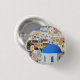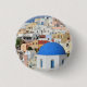 Los edificios de la impresionante Santorini, iglesia de cúpula azul en primer plano con apartamentos en segundo plano.
