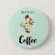 Botón de café divertido con pollo que dice "...pero primero café".