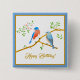 Botón de cumpleaños Cuadrado Pájaros Azules