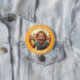 Foto de personalizable y botón de cumpleaños feliz. marco naranja con texto blanco.