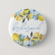 Botón de Dama de Honor de Despedida de Soltera de Limón. Con hermosas flores elegantes de color azul pizarra polvoriento en acuarela y dulces limones amarillos. ¡Consulte los otros botones coincidentes en la colección para otros invitados importantes como la madre de la novia, la madre del novio, la dama de honor y más!