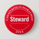 Una insignia para un encargado de eventos. Cambie la redacción a sus detalles. Insignia del mayordomo. Insignia oficial de Steward. Rojo y blanco.