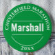 Una insignia para un mariscal de eventos. Cambie la redacción a sus detalles. Señal Marshall. Insignia oficial. Verde y blanco.