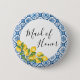 Botones de ducha de novia de la fiesta nupcial con azulejos azules borde con limones - Personalizar tus pines para toda tu fiesta nupcial