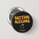 Botón divertido de Fiesta de Despedida de Soltera Getting Hitched. Texto simple que dice Getting Hitched con letras amarillas y un anillo de compromiso. Sé la esposa de la fiesta en este divertido botón de noche de chicas.