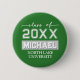 Celebra tu graduación con estilo con este editable botón de graduación verde y blanco! Personalízalo con el nombre de tu graduado y la escuela para un accesorio memorable en la ceremonia de graduación, fiesta o sesión fotográfica. Este clásico pin con temática escolar es un gran keepsake y también perfecto para que padres, amigos y simpatizantes orgullosos se pongan en el gran día. ¡𝐍 𝐎 𝐄! Los colores del fondo y los elementos se pueden cambiar. Asegúrese de ajustarlos tanto en la parte delantera como en la parte posterior de la bandera.
