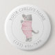 Botón de ID de niño de PINK PAJAMAS CAT - Blanco