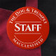 Una insignia para el personal oficial. Cambie la redacción a sus detalles. Insignia del personal. Insignia oficial. Rojo y blanco.