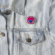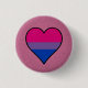 Botón Clásico de Ronda con diseño cardíaco en colores de bisexualidad; bandera del orgullo de rayas rosas, violetas y azules, diseño de amor de arco iris