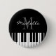 botón de identificación de nombre personalizado con teclas de piano. Elegante diseño de tipografía en blanco y negro para pianistas, piano, profesor de música, instructor, músico, etc. Diseño clásico de instrumentos musicales con nombre o monograma. Diversión para fiesta de cócteles, soltera, boda, cumpleaños, concierto, evento corporativo, etc. También es simpático como un favor de partido.