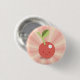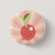 Botón adaptable con el diseño del vector del kawaii que ofrece una cereza feliz linda de la cara en fondo radial rosado.