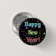 Botón de la Feliz Año Nuevo escrito en letras y confeti coloridos