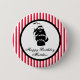 Botón del cumpleaños del pirata. Rayas rojas y blancas con un barco pirata negro. Gran favor de fiesta para cualquier cumpleaños del fiesta del pirata.