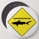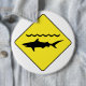Abotone con una señal de tráfico amarilla con un icono del "tiburón de cuidado".