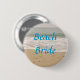 Este botón de la novia de la playa ofrece las palabras adaptables "novia de la playa" contra una foto de una marea del océano que entra en una orilla arenosa. Esto hace un botón perfecto para las duchas, los fiestas del bachelorette y los ensayos. También vea la reserva que hace juego las tarjetas de fecha y los sellos.
