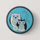 El botón ofrece un par de búhos alegres en un día de invierno quebradizo.