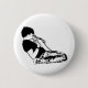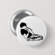 Un botón blanco y negro que ofrece a un hombre que se arrodilla y que canta en un micrófono.