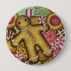 Un hombre de jengibre está rodeado de galletas de Navidad en este botón festivo. Use este pin de jengibre durante toda la temporada navideña. El diseño es de una pintura original.