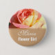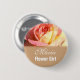 Bonito botón de nombre de boda floral rosa y amarillo. Dama de las flores. También para la dama de honor, etc. Foto de arte floral.