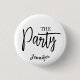 Botón de soltera con letra moderna y linda para que las amigas de la novia lo usen durante su despedida de soltera. Texto simple escrito a mano que dice la fiesta. El botón de regalo personalizado perfecto para la dama de honor y otras amigas. Ver colección coincidente.