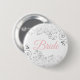 Identifica a los protagonistas de tu ducha de novia, boda o cena de ensayo con nuestros elegantes botones rosas y grises. Diseñado para coordinar con nuestro conjunto de Boda Elegante Rosa y Gris, este botón presenta un florecimiento de falso foil plateado sobre un fondo blanco con texto negro que dice Novia. Perfecto como favor o regalo para los miembros del grupo de boda.