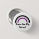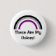 Botón redondo con rayas de arco iris asexualidad de negro, gris, blanco y violeta; ace el diseño de la bandera de orgullo sobre fondo blanco, "Estos son mis colores" texto de la plantilla, por pinkbrickroad