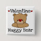 ¡Botón el día de San Valentín con un adorable oso de peluche marrón, corazones rojos y texto que dice "Oso Huggy de San Valentín"!