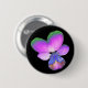 Este botón muestra una fotografía de una flor Pansy salvaje. La foto ha sido pintada artificialmente, lo que ha resultado en una marsopa con pétalos rosados brillantes de color violeta con puntas verdes de pétalos y un centro azul profundo. El fondo es negro para hacer que la flor destaque.