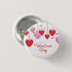 Hermoso botón El día de San Valentín ilustrado vectorial que representa corazones rosados y rojos en cadenas negras (frontal y posterior) con el tipo "Feliz Día de San Valentín".
