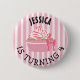 Chica de Cumpleaños Personalizado, edad del pastel rosa y botón de cumpleaños.
