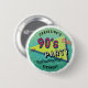 Botón Fiesta de los años 90 con una divertida tipografía de estilo de los '90's Fiesta'. El diseño incluye elementos de azul, naranja y rosa, bordes amarillos, rasgados, patrones geométricos y formas inspiradas en los años 90. Incluye una plantilla para personalización personal.