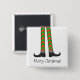 Feliz Navidad! Un botón cuadrado con las piernas del Navidad, versión de trajes de chevron. Personalizar el botón con tu propio texto entre otras opciones.