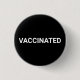 Botón de pin blanco y negro vacunado. Texto blanco, fondo negro. elegante estilo minimalista