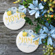 Botón de Pin de Despedida de Soltera Limón de la Madre del Novio. Con hermosas flores elegantes de color azul pizarra polvoriento y limones amarillos dulces en acuarela. ¡Consulte los otros botones a juego de la colección para otros invitados importantes como la madre de la novia, dama de honor, damas de honor y más!
