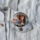 Personalizar tu botón de recuerdo para que tus amigos y familia se pongan en un funeral o servicio conmemorativo. El diseño presenta una fotografía de su ser querido con la cita 'FORVER EN NUESTROS CORAZONES', su nombre en un moderno tipo de letra de caligrafía y fecha con un overlay.