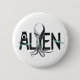 Destacar con este botón único. La palabra "ALIEN" está diseñada creativamente con un extraterrestre tipo pulpo que reemplaza la letra "I" en el medio. Perfecto para los amantes de la ciencia ficción, este diseño divertido y extravagante añade un toque extraterrestre audaz a tu mirada.