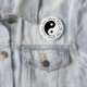 Balanza - amor vivo del plan del juego del trabajo crezca - perno blanco del botón con las letras de la escritura y el símbolo negros de yang del yin.