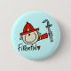 Si su profesión es la de un bombero, usted amará este botón colorido del bombero que ofrece una figura masculina bombero y el texto del palillo que lee al "bombero" en un fondo azul.
