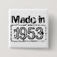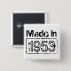 Botón del cumpleaños con año sellado personalizado del nacimiento. Mirada apenada vintage.