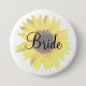 Botón del girasol modificado para requisitos particulares con el texto para el título de cualquier miembro del partido nupcial (ex: Novia, criada del honor, dama de honor, madre de la novia). Coordenadas con la línea completa de elementos nupciales de la ducha del girasol.