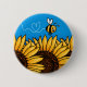 una abeja linda vuela sobre una fila de girasoles y deja un rastro en forma de corazón en esta diversión y botón colorido