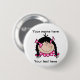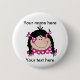 ¡Añada el nombre o el otro texto de su niño a este botón adaptable lindo que ofrece a una niña con el pelo negro en trenzas!