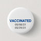 Botón de pasador vacunado con fecha personalizado personalizable texto, fechas. También se pueden borrar minimalista elegante estilo simple pin del botón, azul, blanco y gris